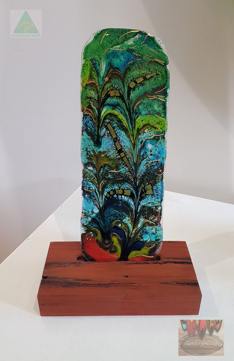 Custom-made fused art glass which has been individually hand-crafted from the finest art glass materials in- studio at TSG Artists in Glass.